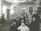 Елизавета с сыном и соседями во дворе своего дома. Елизавета вторая справа, а второй слева ее сын Ефим. Они проживали по улице Ленина (бывшая Решельевская).
